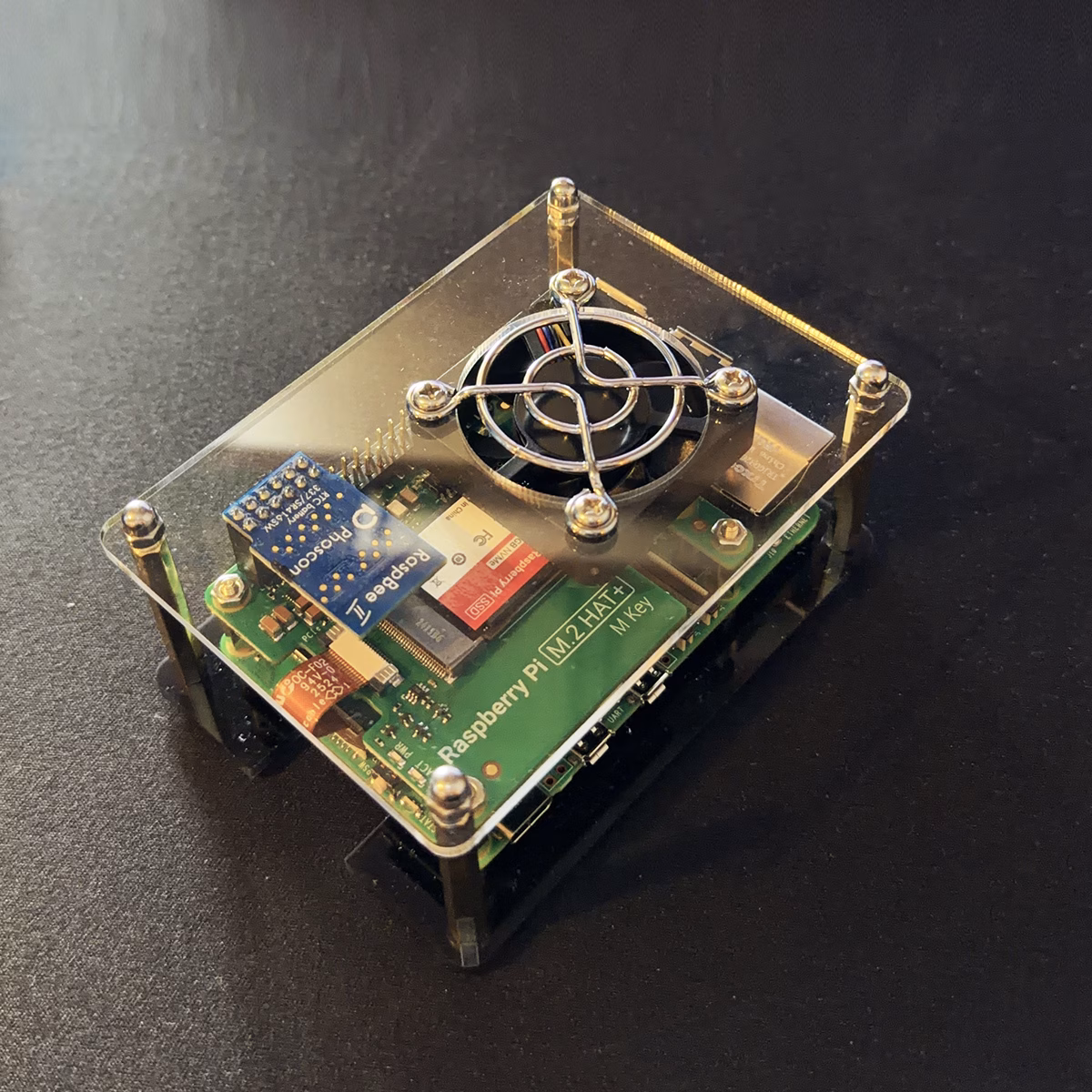 Für die Zigbee-Integration nutze ich das RaspBee II Modul den SONOFF Zigbee 3.0 USB Dongle Plus, der per USB mit dem Raspberry Pi verbunden wird. Ich habe den Umweg über eine microSD-Karte mit Pi OS Lite genommen, da die NVMe nicht als externes Laufwerk oder dergleichen eingebunden werden kann. Den Versuch mit dem RaspBee II Modul habe ich verworfen, da ich das System so nicht stabil ans Laufen bekommen habe.